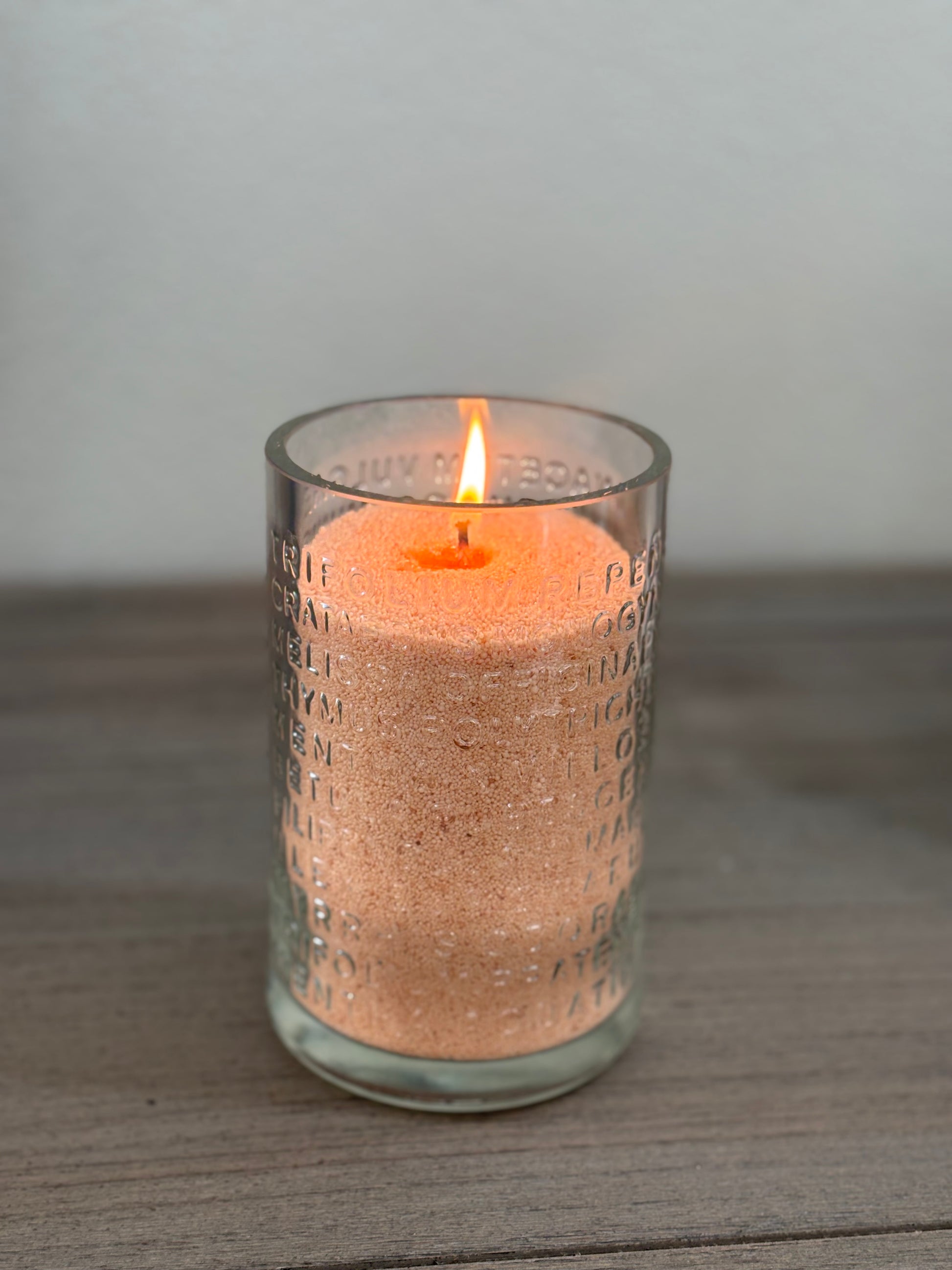 Handcrafted from a reclaimed Botanist gin bottle, this candle highlights the bottle’s beautiful botanical detailing and smooth, polished finish. Filled with our clean-burning natural sandwax, it brings a warm, elegant glow to any space.