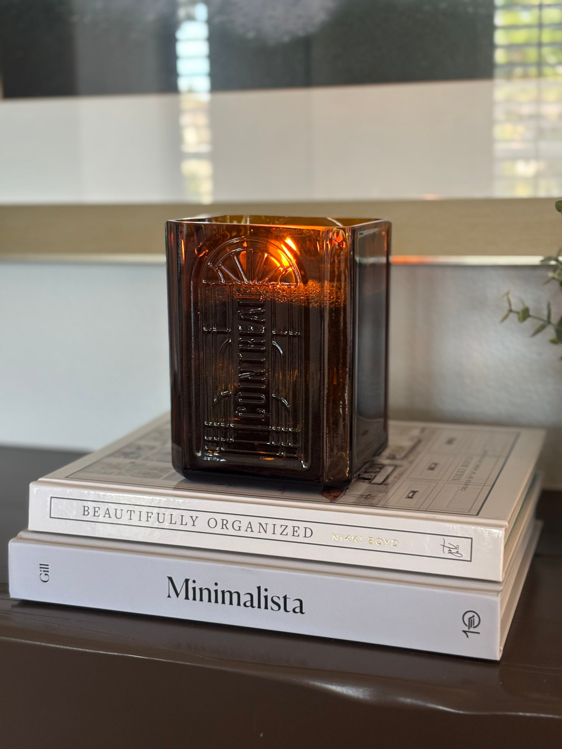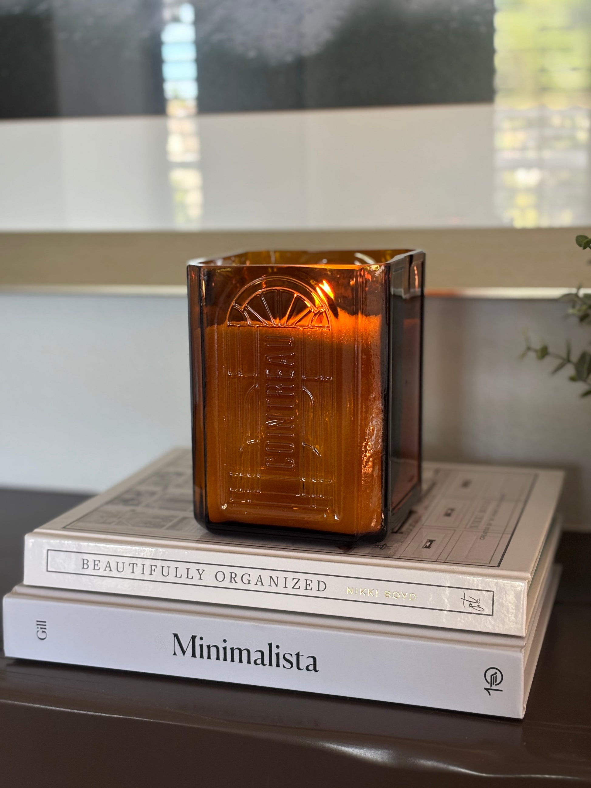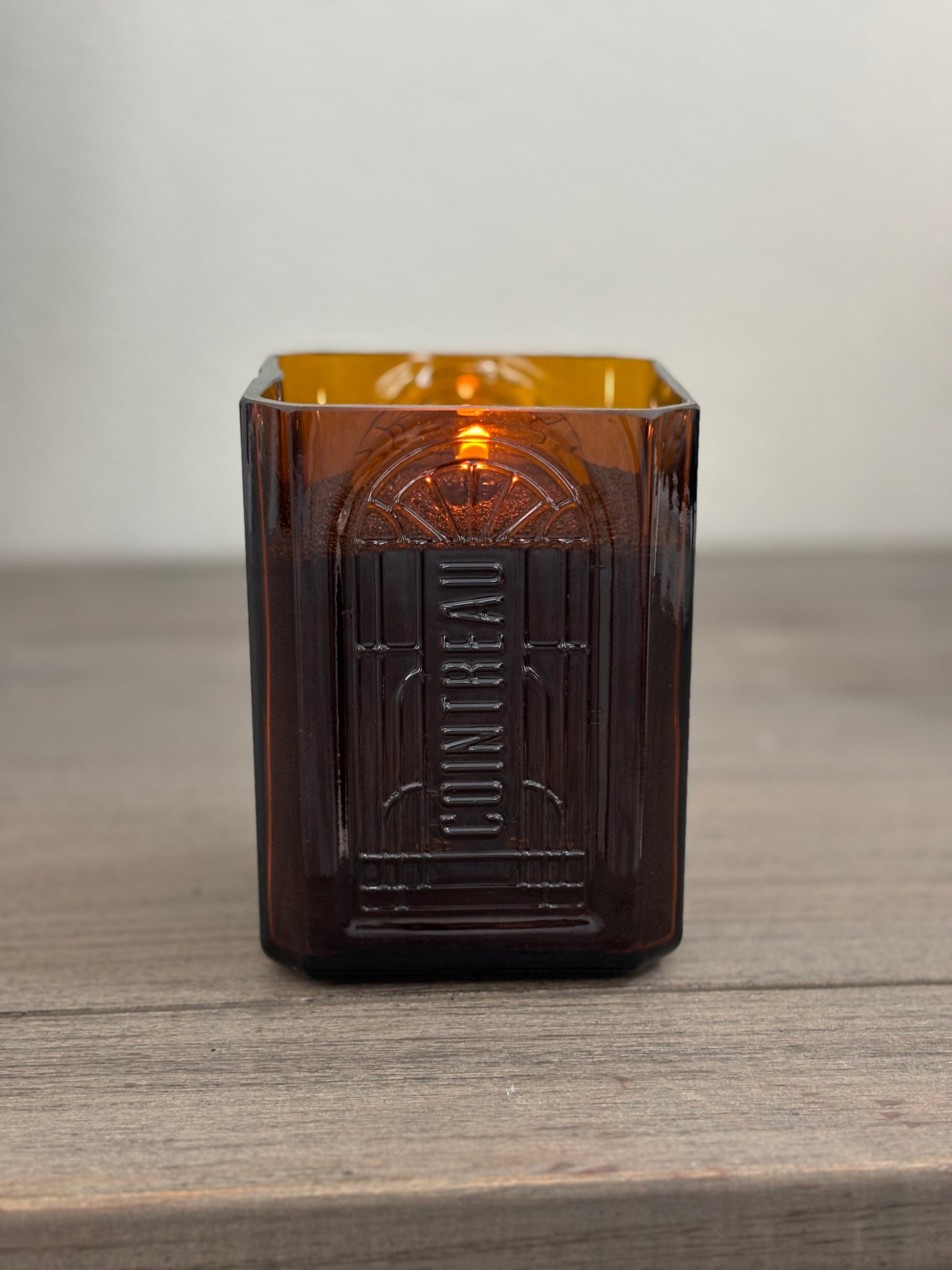 Crafted from an authentic Cointreau bottle, this candle brings new life to the iconic square-edged design and deep amber glass. Each bottle is carefully cut, smoothed, and polished by hand, creating a bold, elegant vessel filled with our clean-burning natural sandwax.