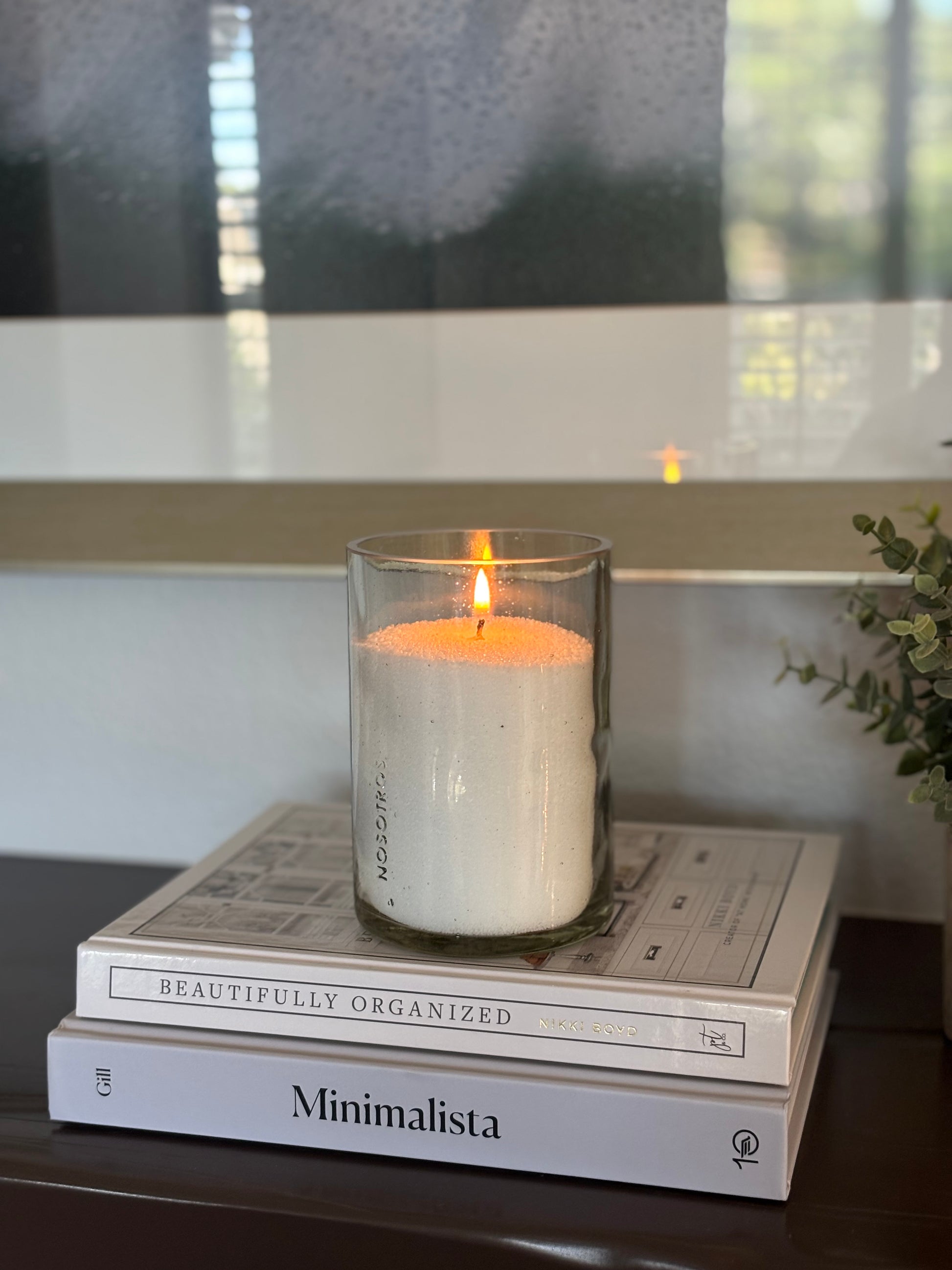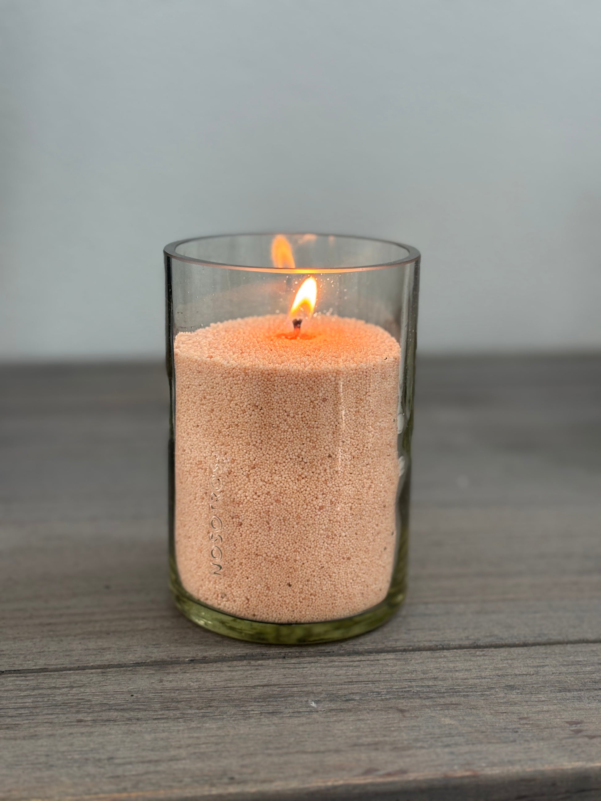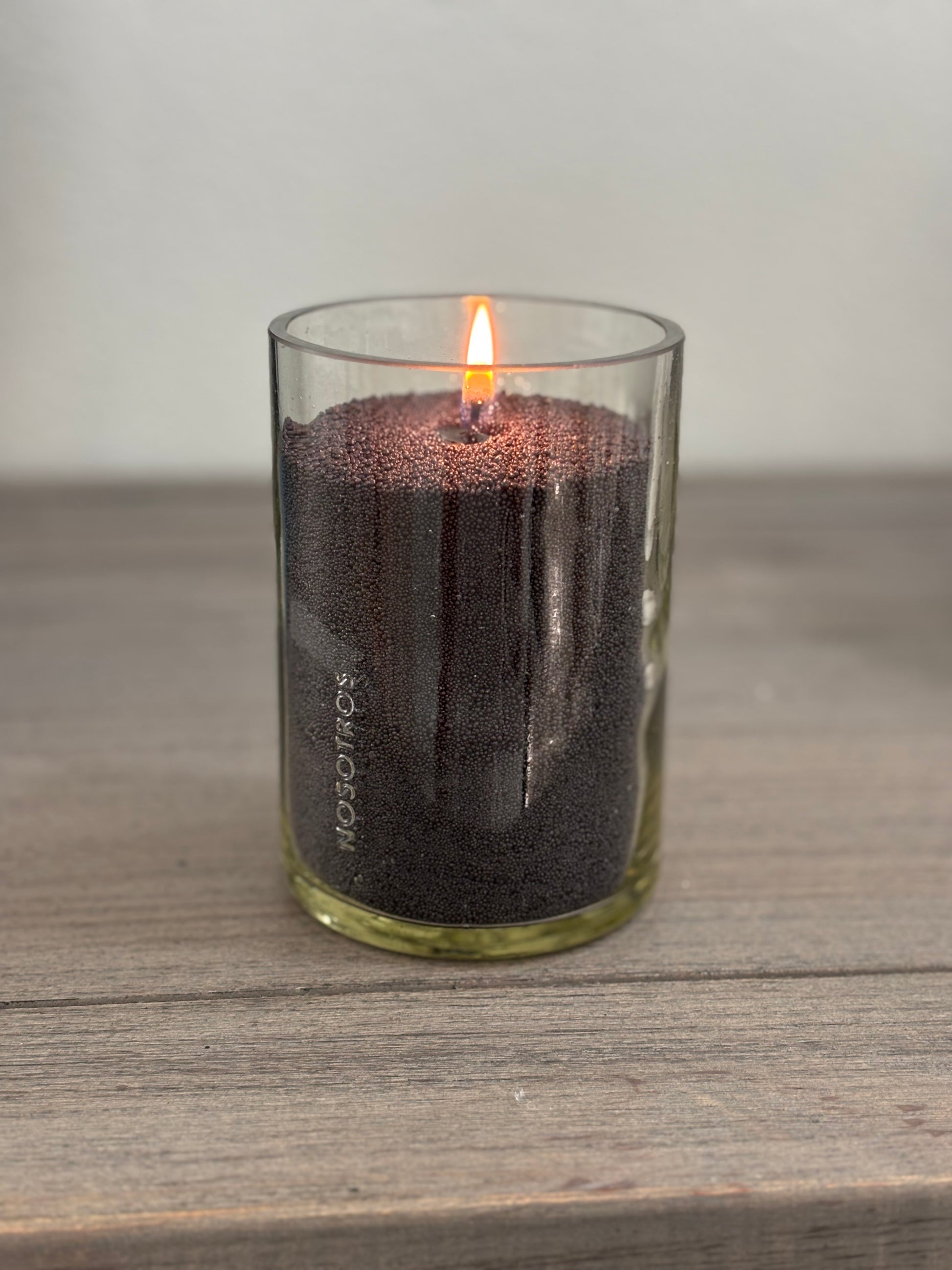 Handcrafted from an authentic Nosotros Tequila bottle, this candle showcases the bottle’s modern, minimalist design while giving it a second life. Each bottle is cut, sanded, and polished to a smooth finish, then filled with our clean-burning natural sandwax for a warm, steady glow.